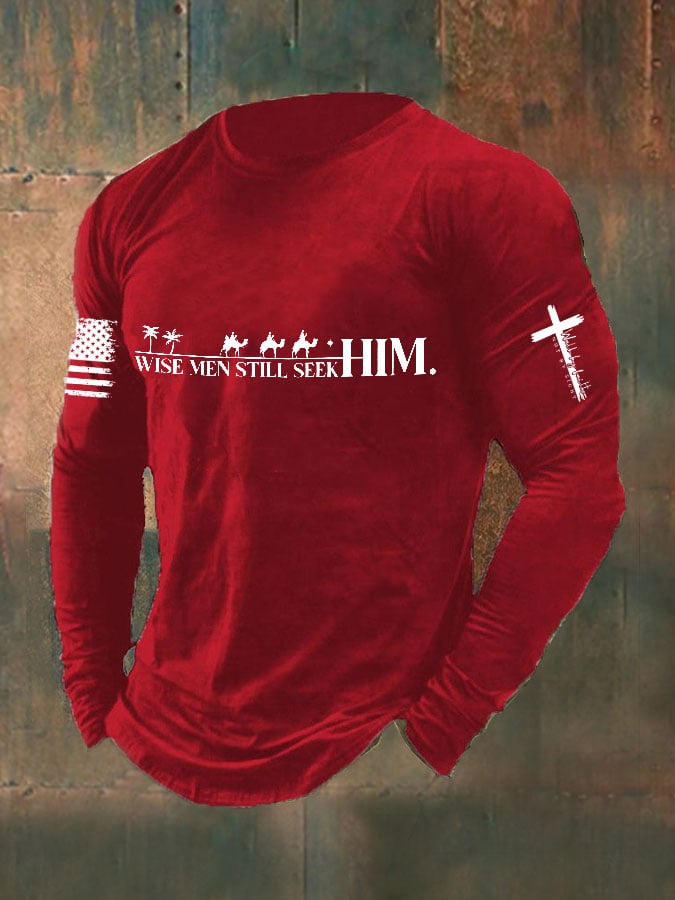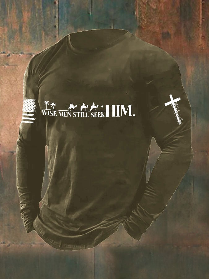 Men's Wise Men Still Seek Him Walk By Faith Not By Sight Print Casual Long Sleeve T-Shirt