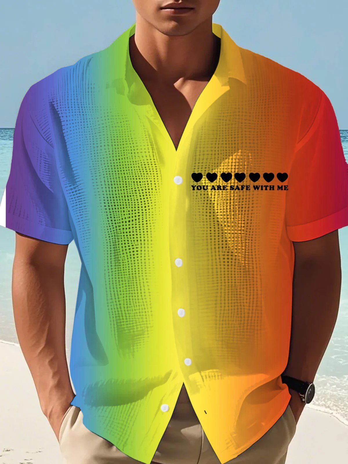 Men's You Are Safe With MePrint Waffle Shirt
