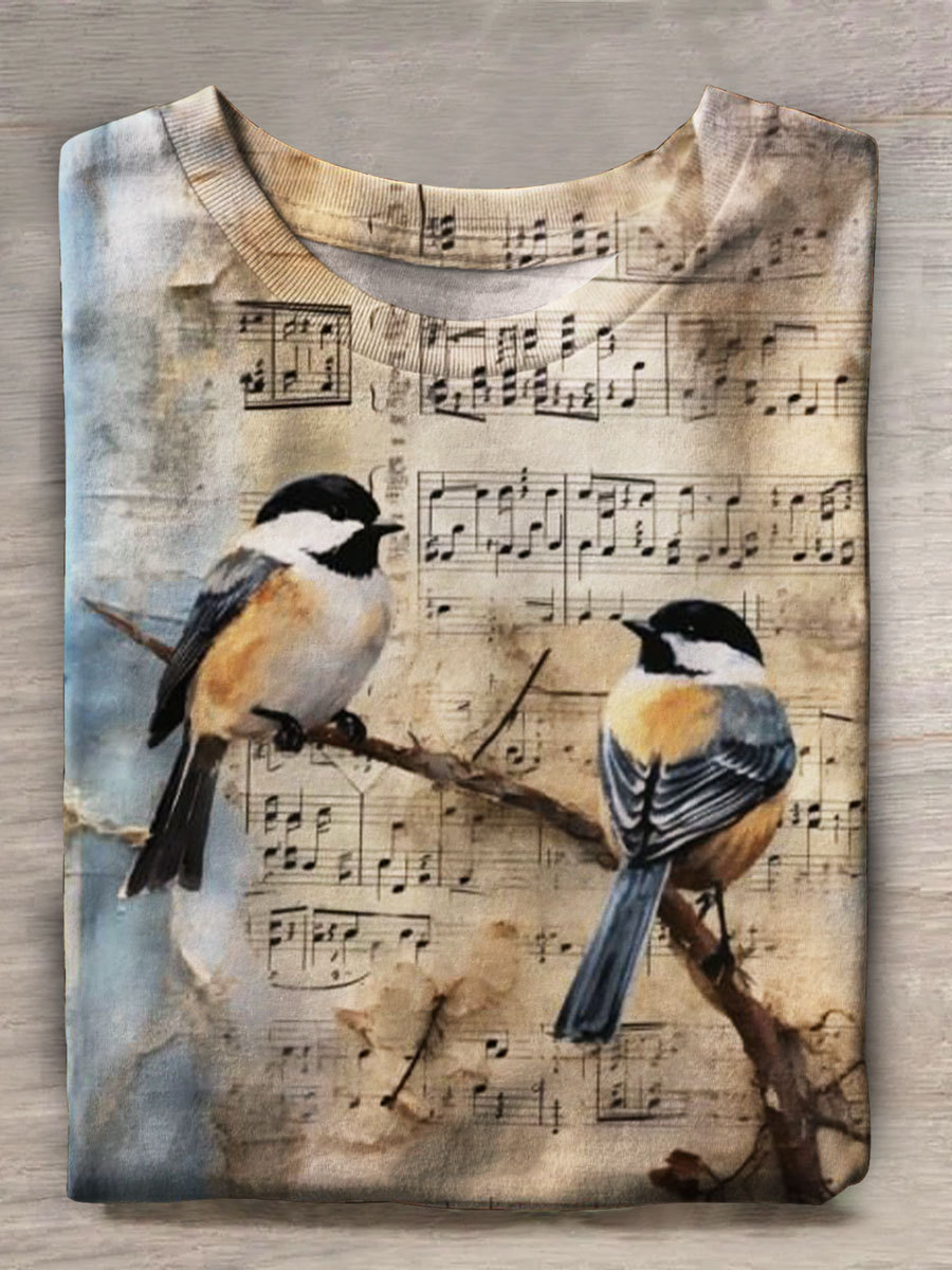 Musical Bird Prints Casual T-shirt