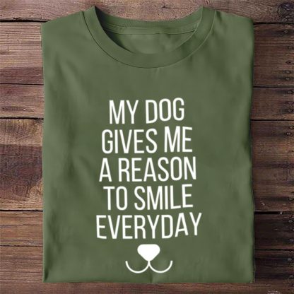 My Dog Gives Me Reason To Smile Print Casual Round Neck Short-sleeved T-shirt