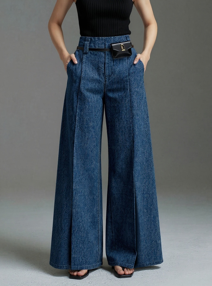 No Belt Solid Color Split-Front Wide Leg Trousers Jean Pants Bottoms