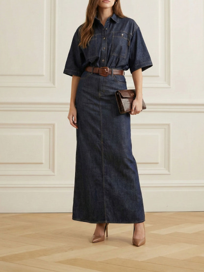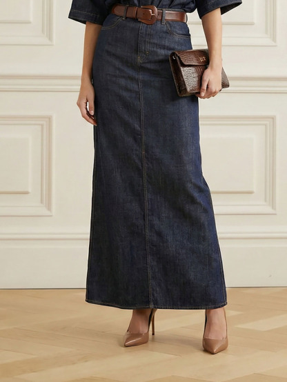 No Belt Solid Color Zipper Column Skirts Bottoms