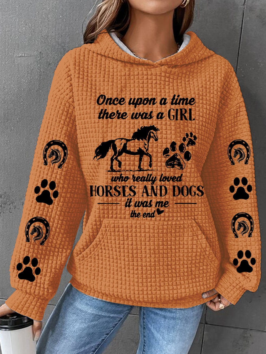Once Upon A Time There Were A Girl Horses And Dogs Print Waffle Sweatshirt