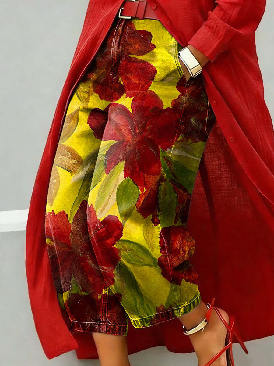 Painted Floral Decorative Patterns Women's Casual Jeans