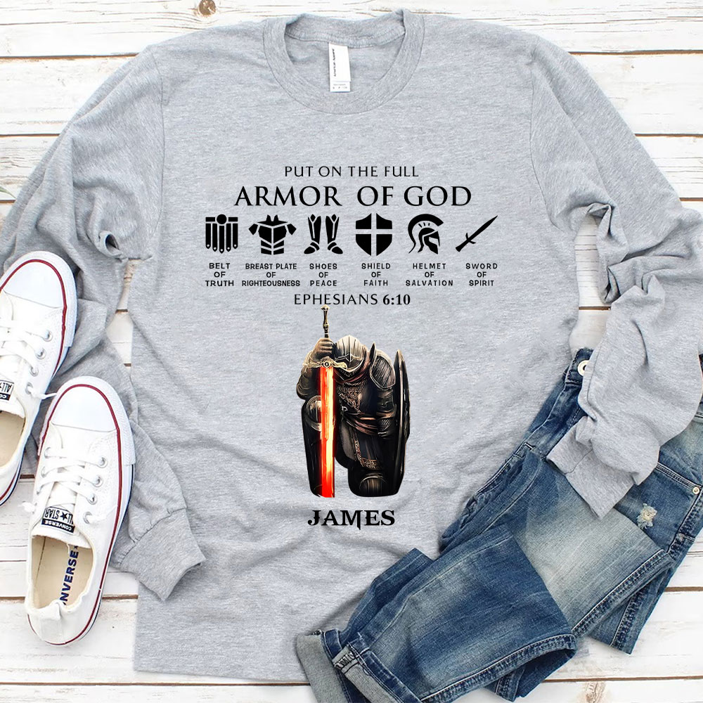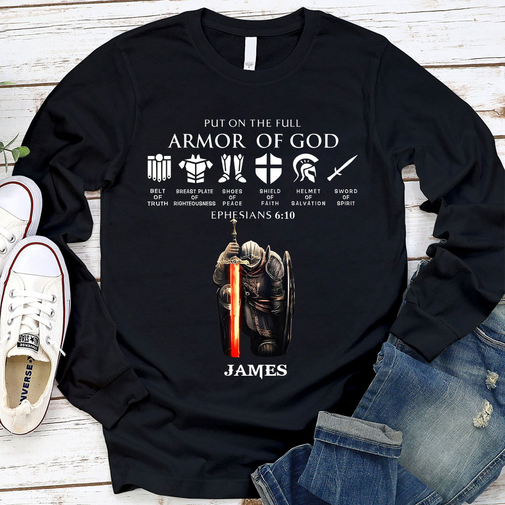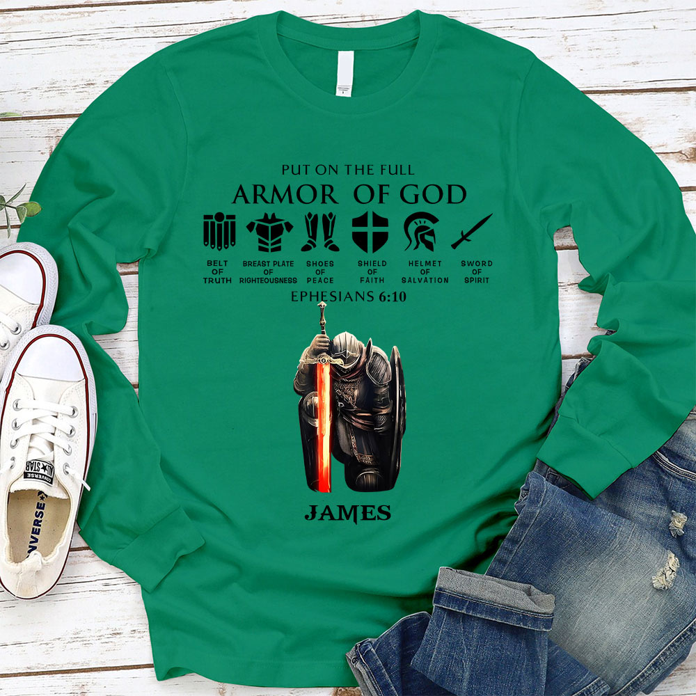 Personalized Name Put On The Full Armor Of God Long Sleeve T-Shirt