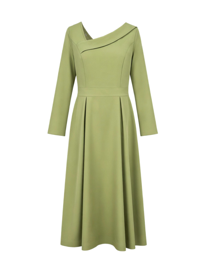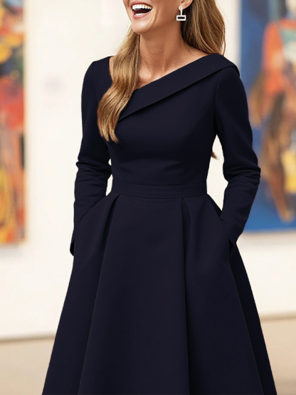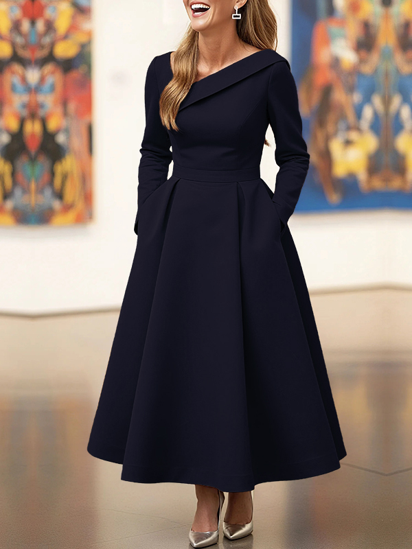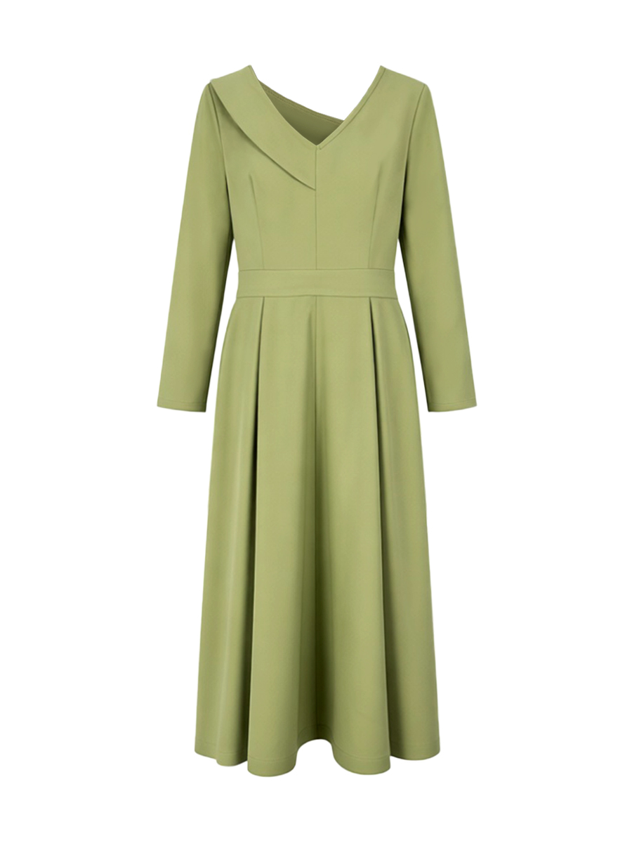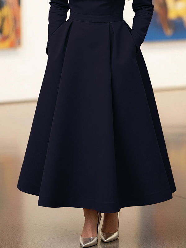 Pleated Pockets Solid Color A-line High Waisted V-neck Maxi Dresses