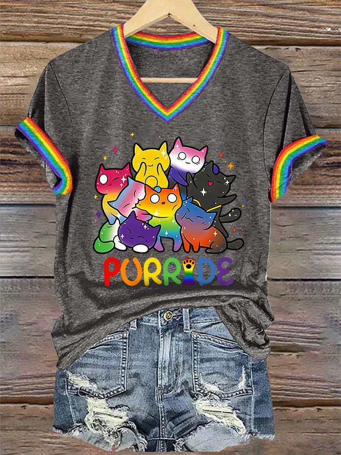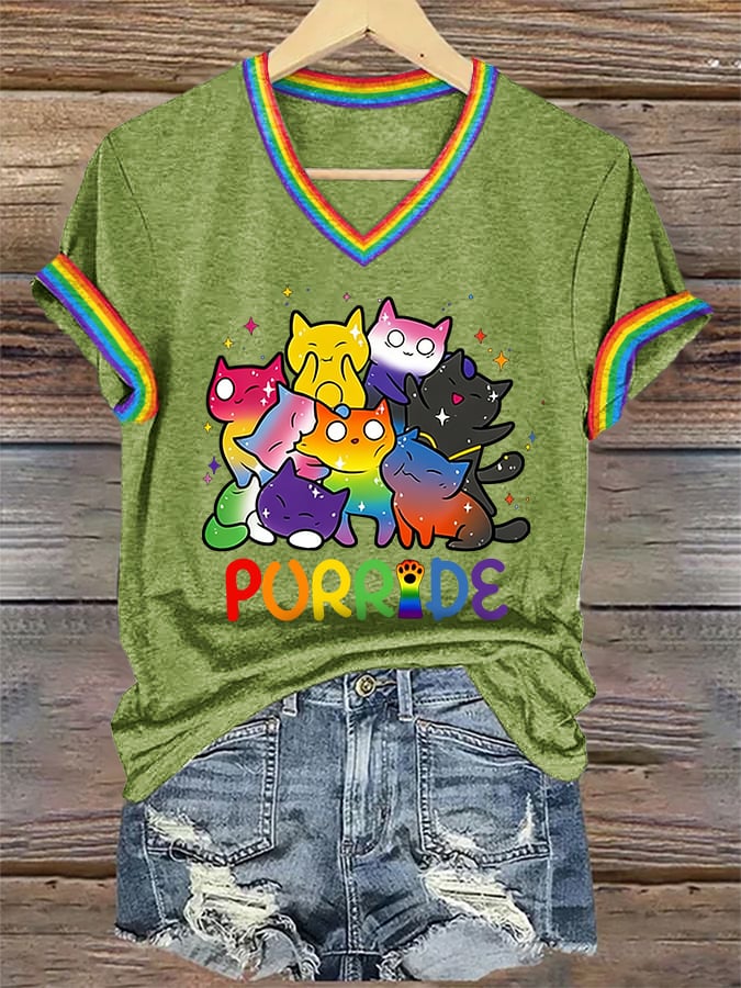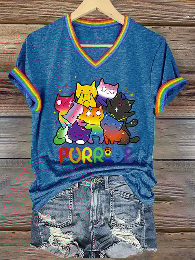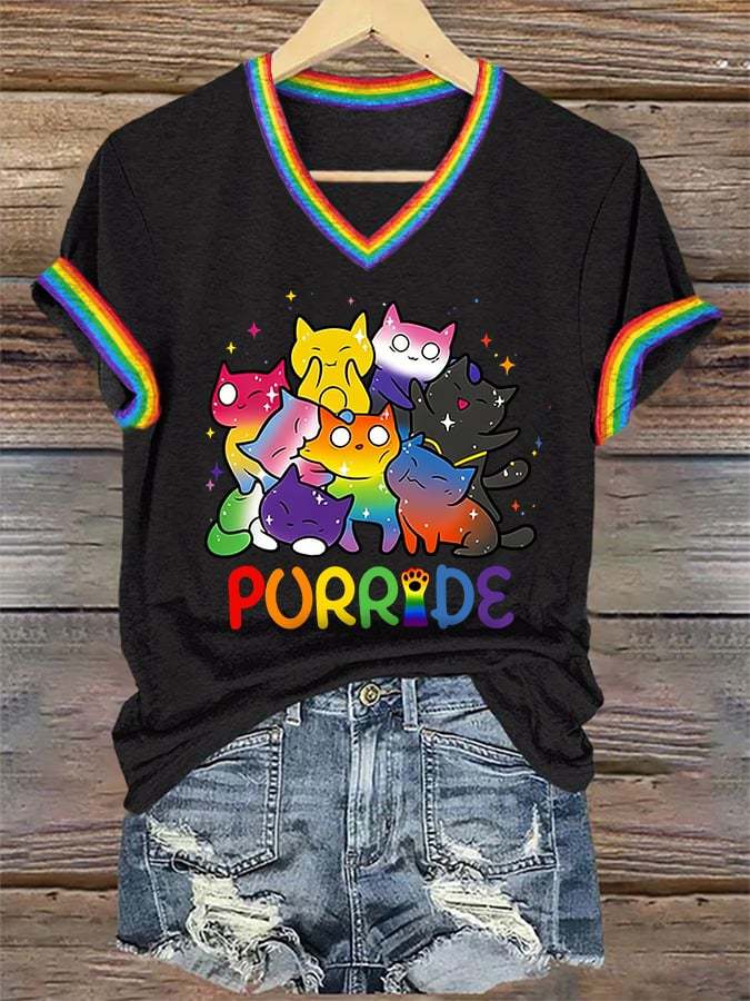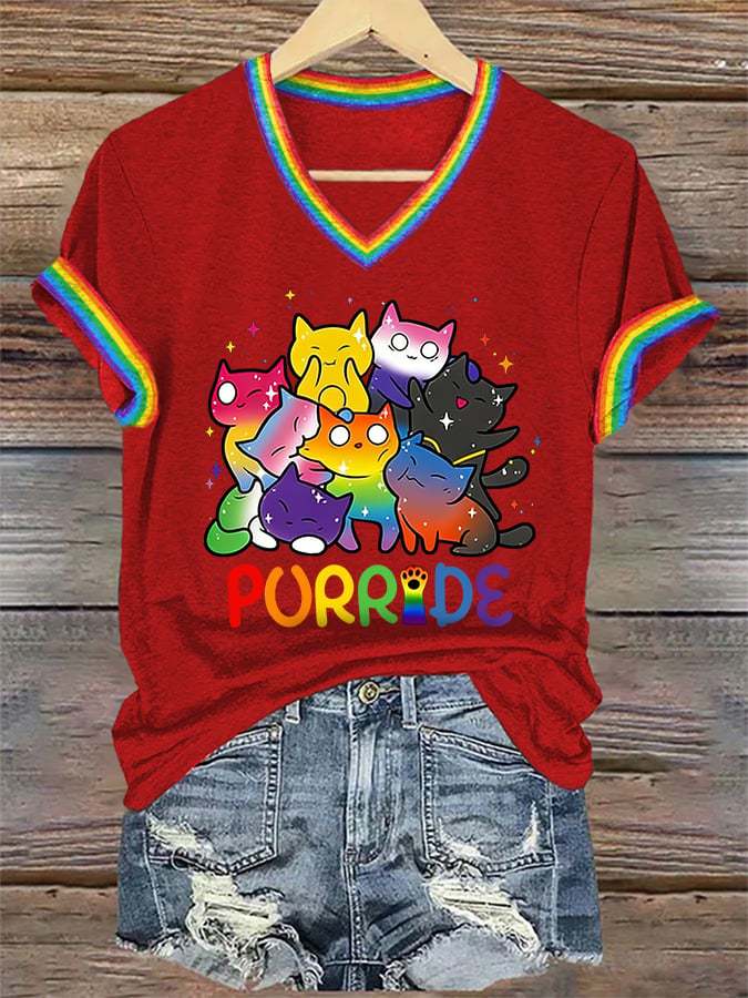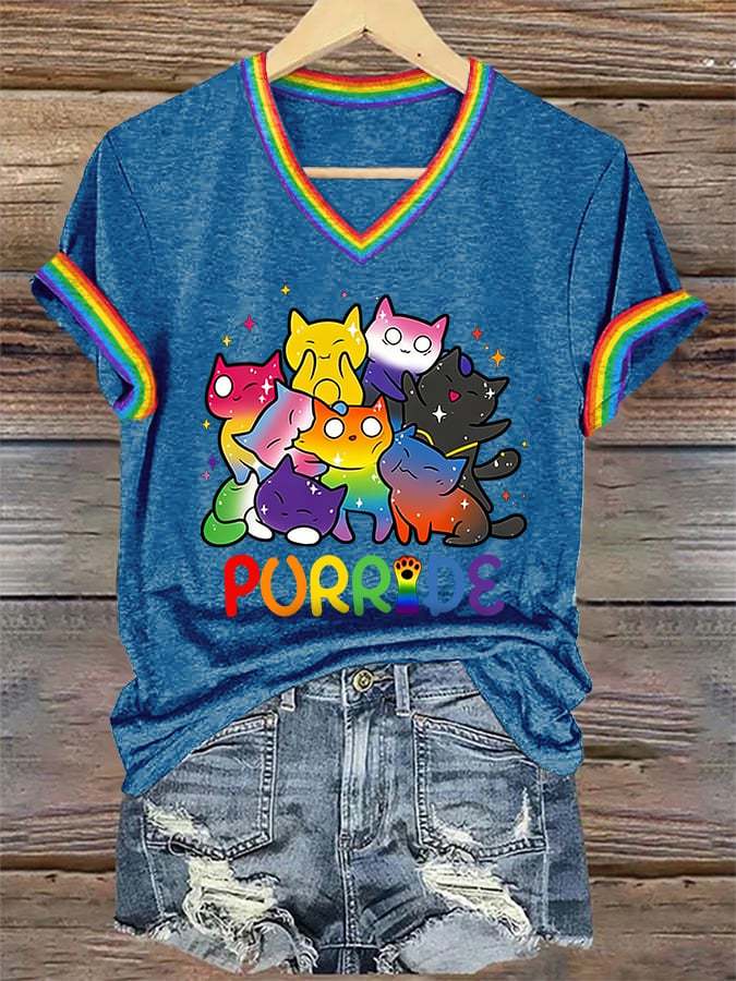 Rainbow Cat Women'S Pride Month Print Short-Sleeve T-Shirt
