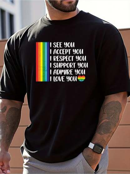 Rainbow Pride Month Gay Copywriting Printed Round Neck Casual T-shirt