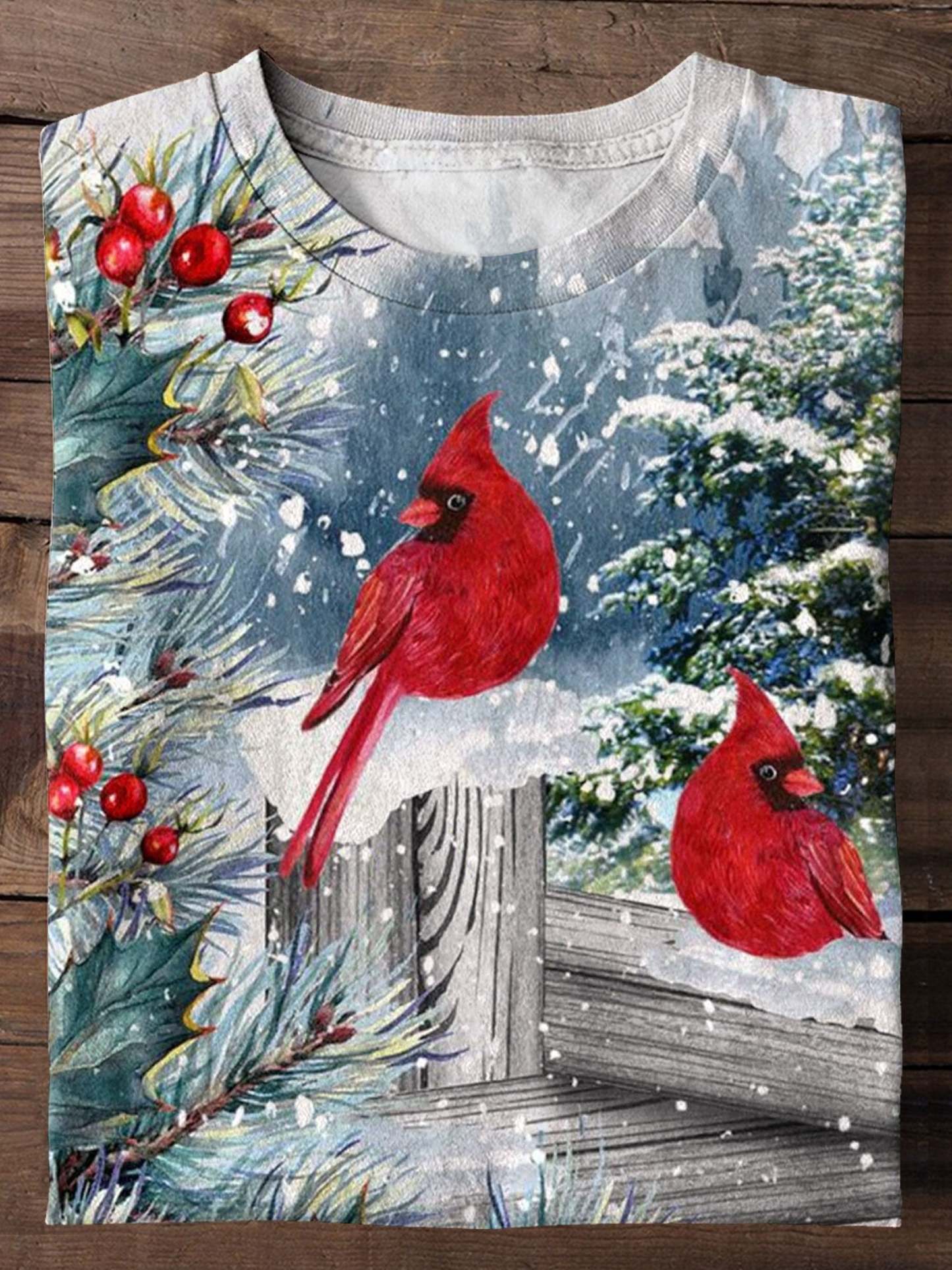 Red Cardinal Bird Winter Art Print T-shirt