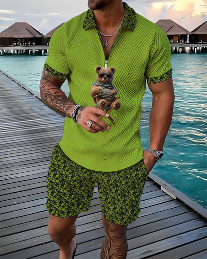 Relaxed Bear Polo Shirt And Shorts Co-Ord