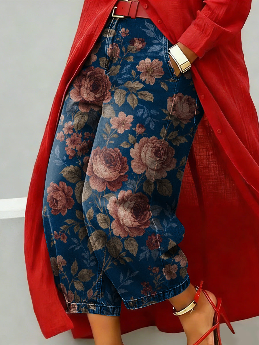 Retro And Elegant Floral Decorative Pattern Women's Casual Jeans