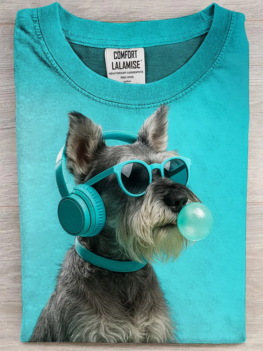 Retro Art Fun Dog Print Casual Pure Cotton Short Sleeved T-shirt