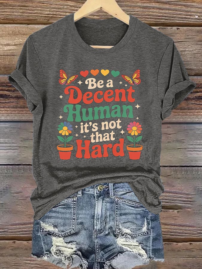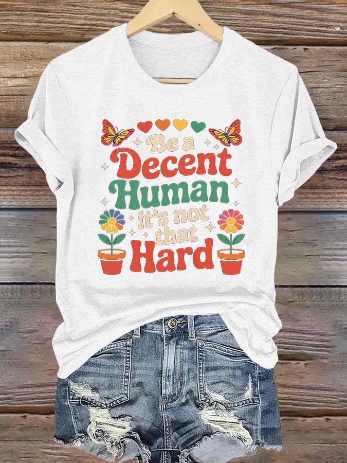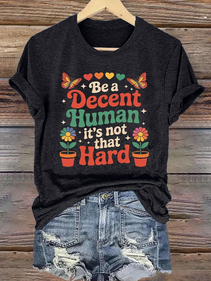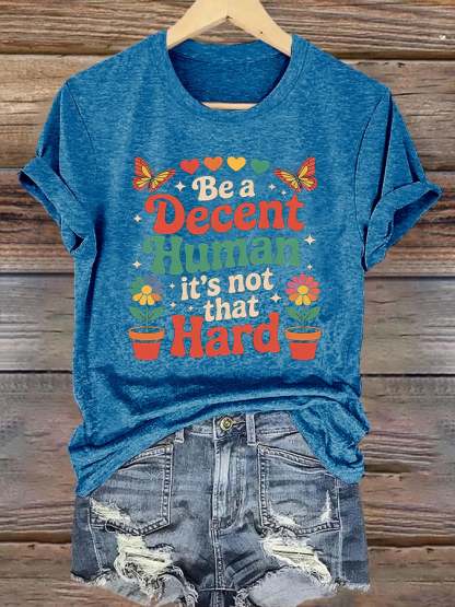 Retro Be A Decent Human It's Not That Hard Print T-Shirt