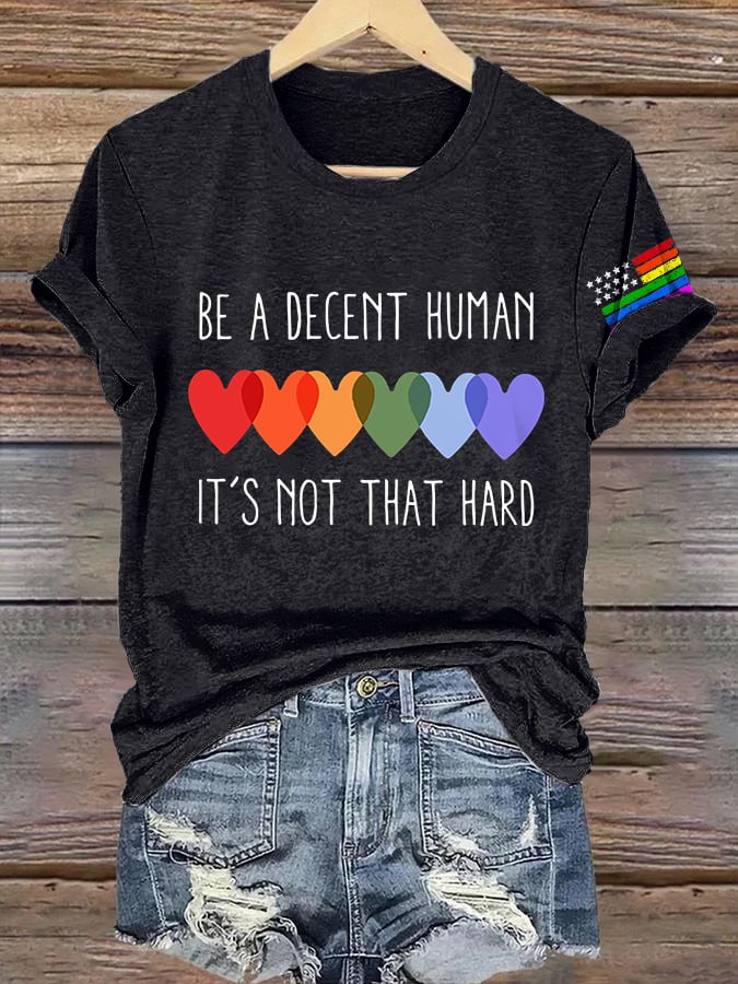 Retro Be A Decent Human It's Not That Hard Print T-Shirt – lolonb