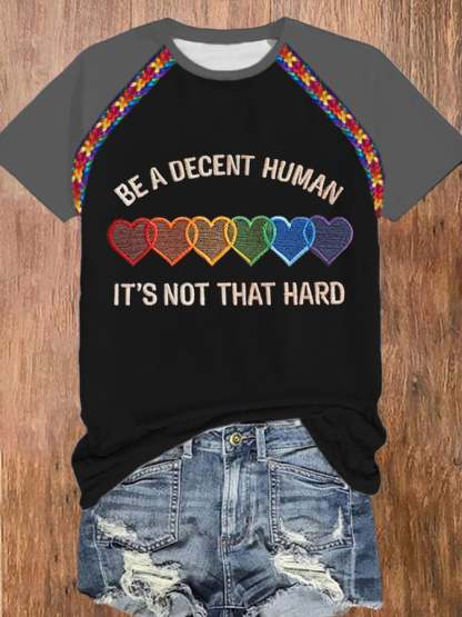 Retro Be A Decent Human It's Not That Hard Print T-Shirt