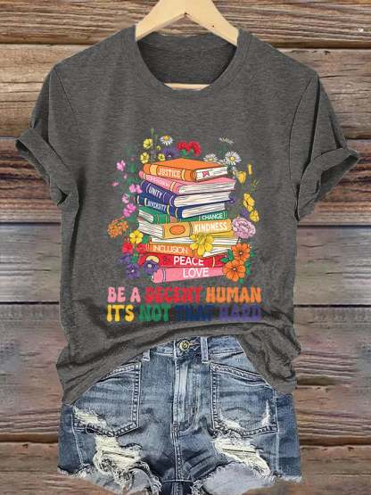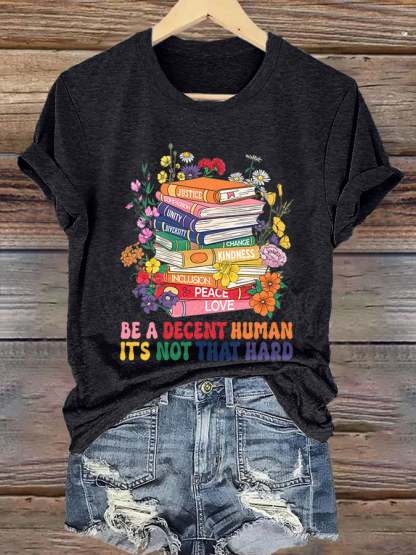 Retro Be A Decent Human It's Not That Hard Print T-Shirt – lolonb