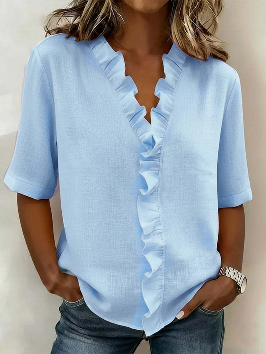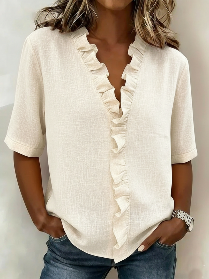 Retro Cozy Ruffled Collar Linen Cotton Shirt Top