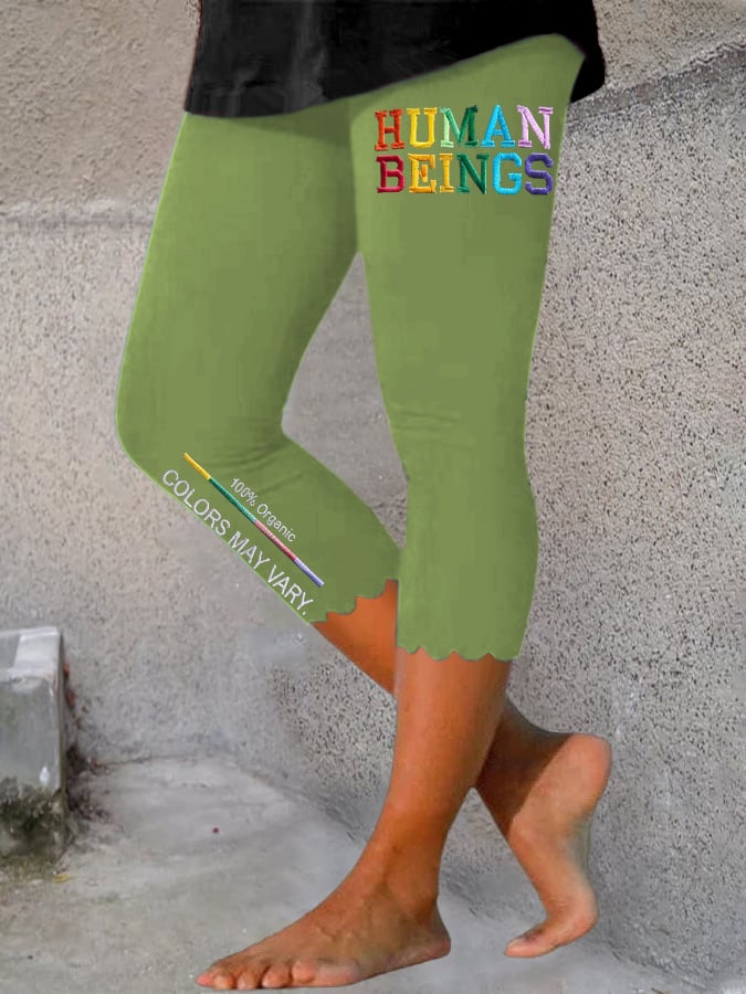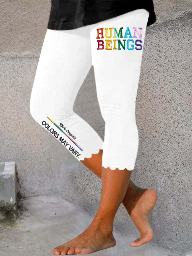 Retro Human Beings 100% Organic Colors May Vary Human Rights Equality Pride Print Leggings