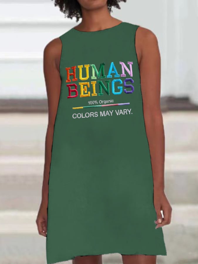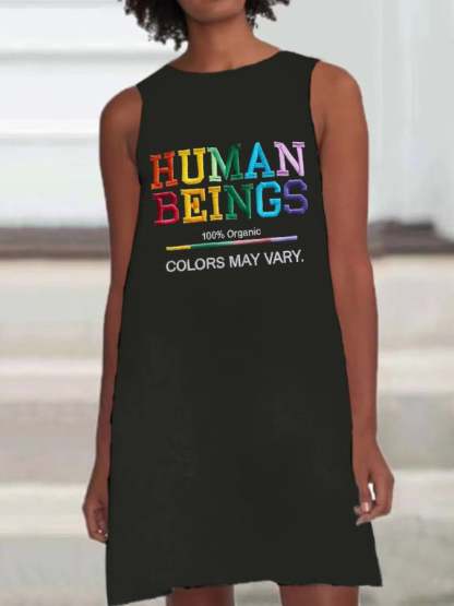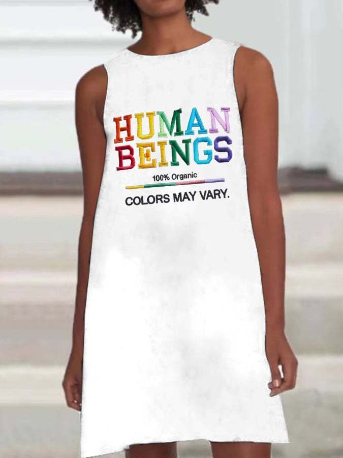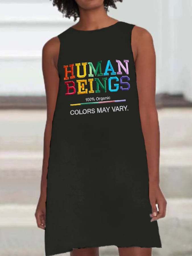 Retro Human Beings 100% Organic Colors May Vary Human Rights Equality Pride Print Sleeveless Dress