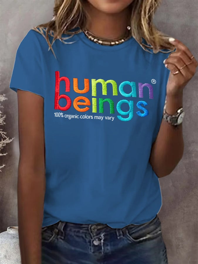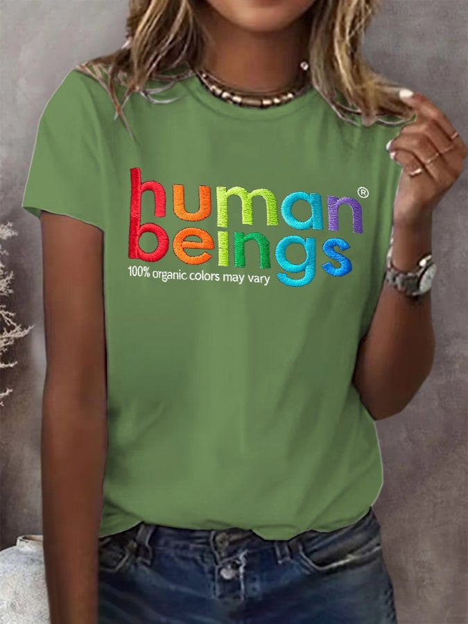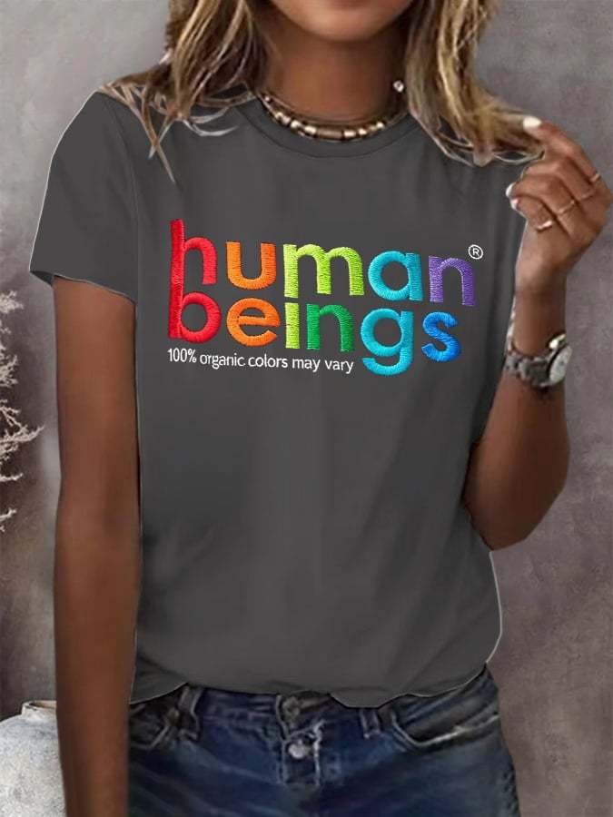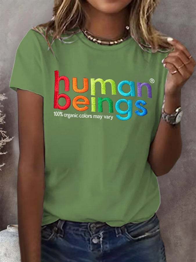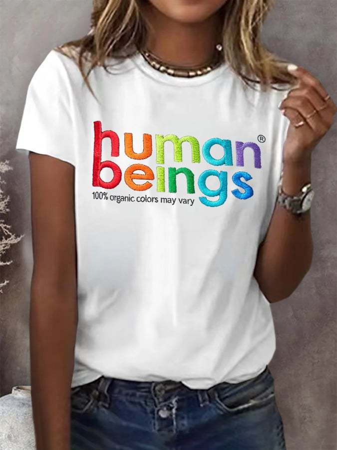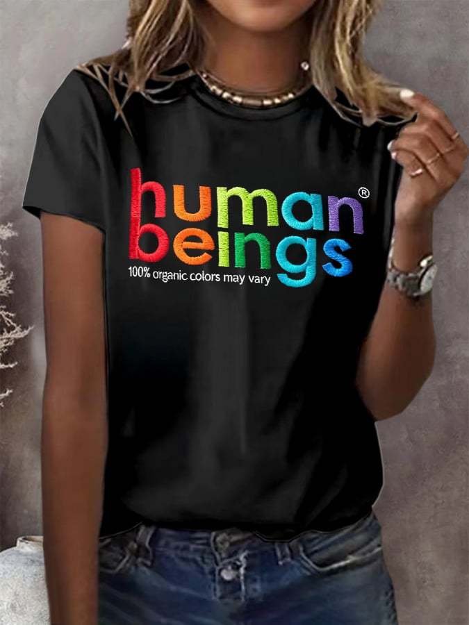 Retro Human Beings 100% Organic Colors May Vary Human Rights Equality Pride Print T-Shirt