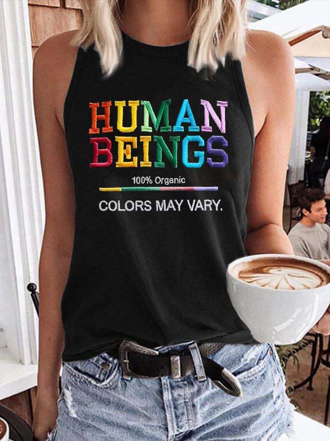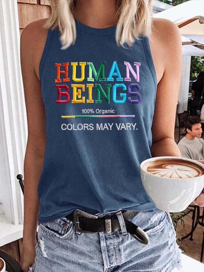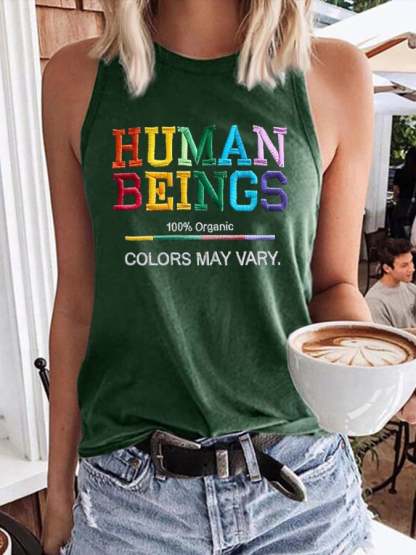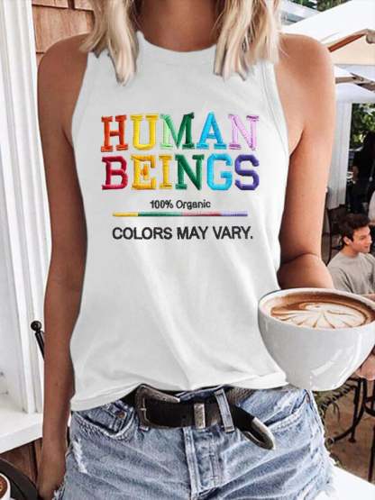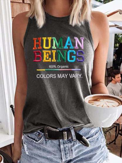 Retro Human Beings 100% Organic Colors May Vary Human Rights Equality Pride Print Tops Tank