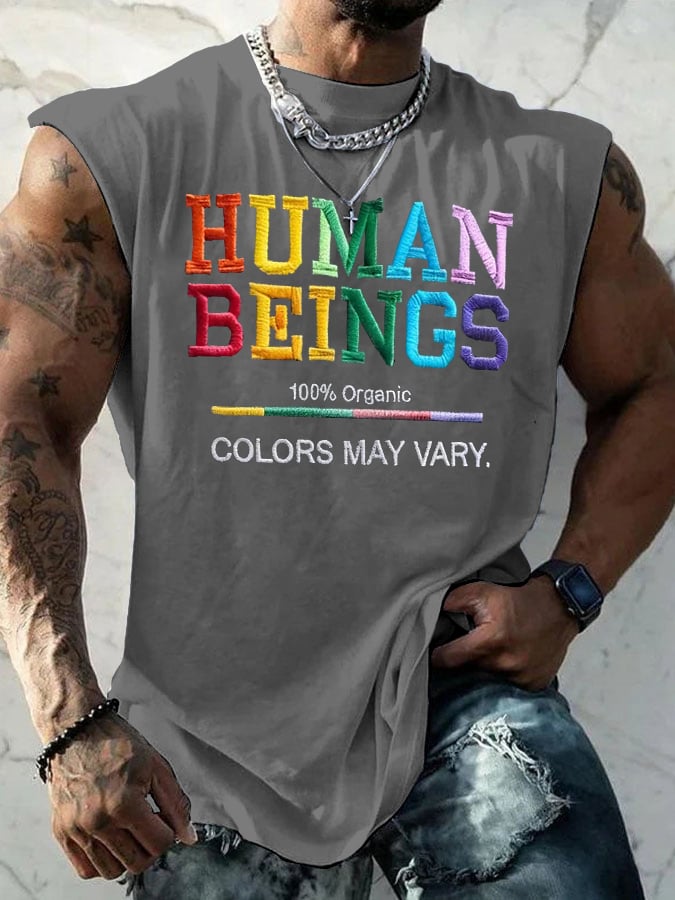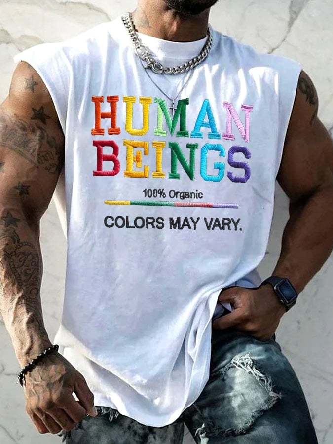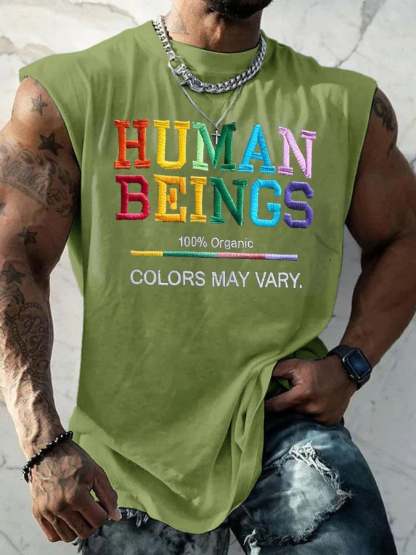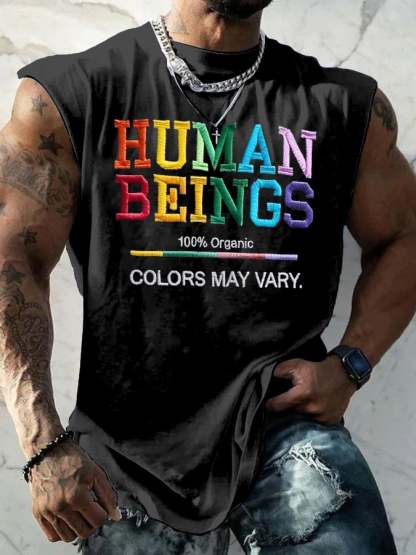 Retro Human Beings 100% Organic Colors May Vary Human Rights Equality Pride Print Tops Tank
