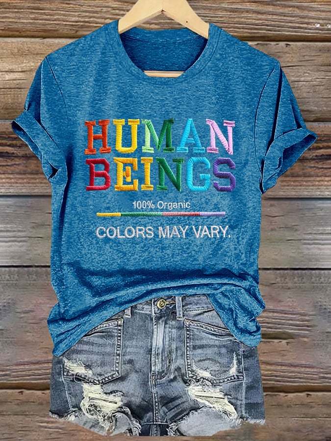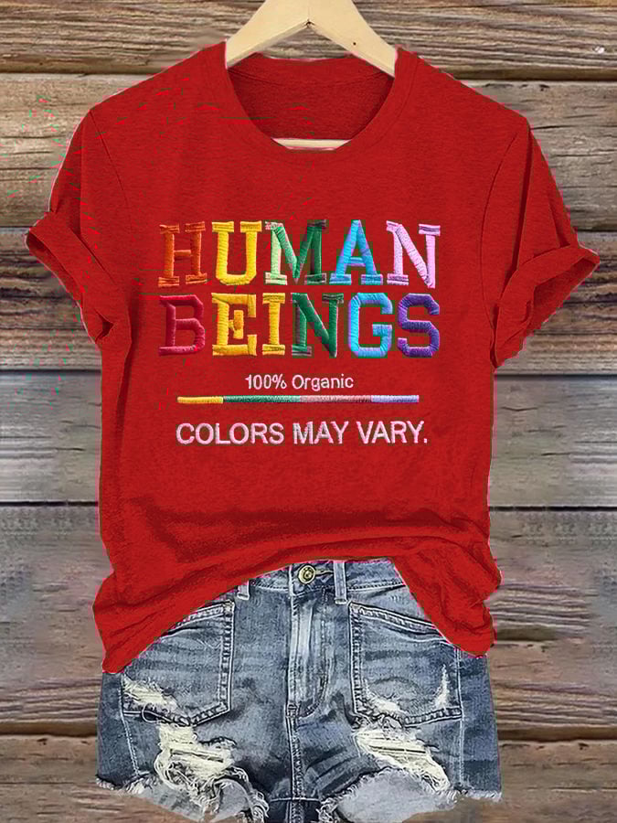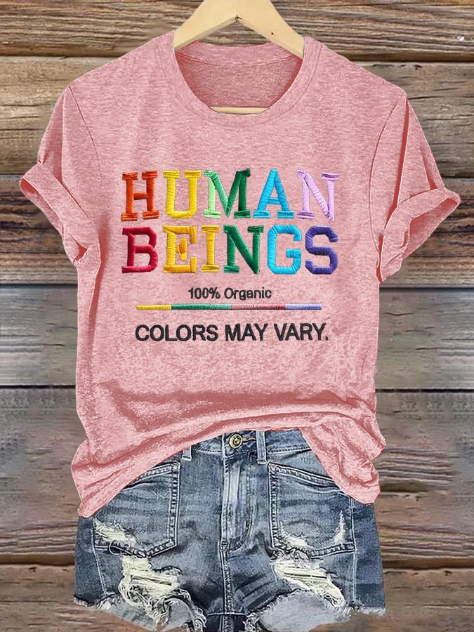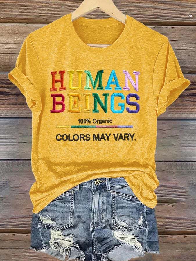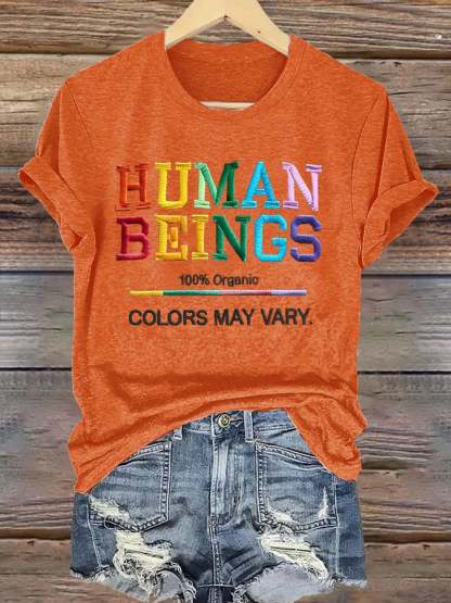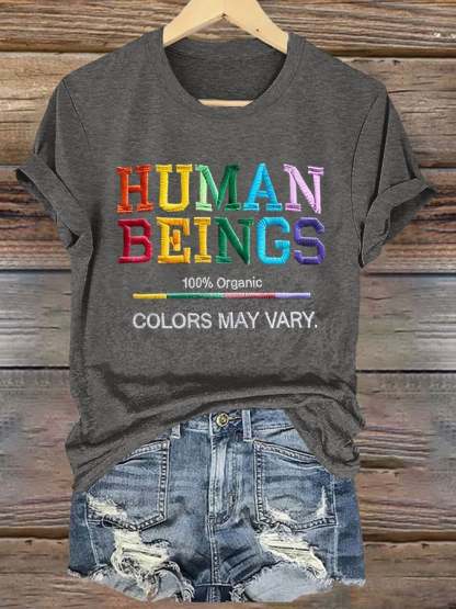 Retro Human Beings 100% Organic Colors May Vary Human Rights Equality Pride T-Shirt
