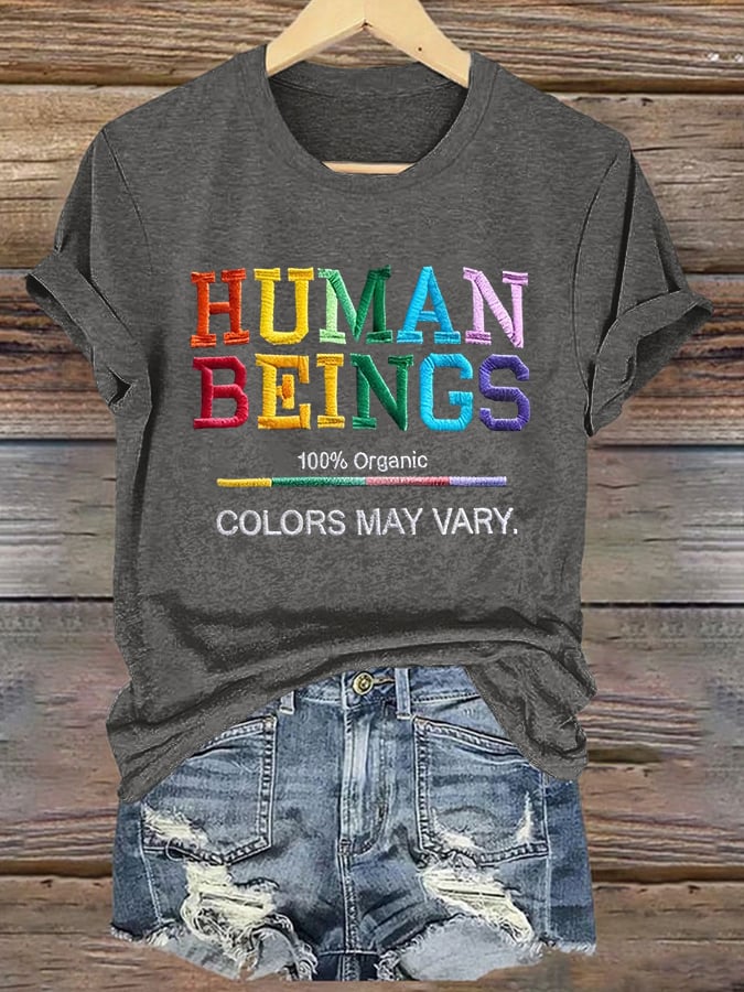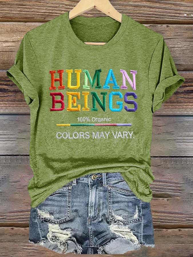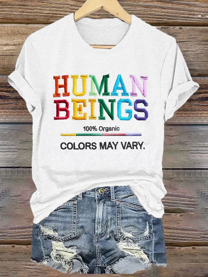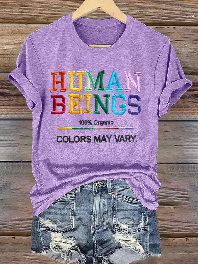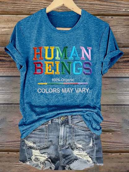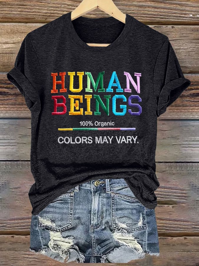 Retro Human Beings 100% Organic Colors May Vary Human Rights Equality Pride T-Shirt