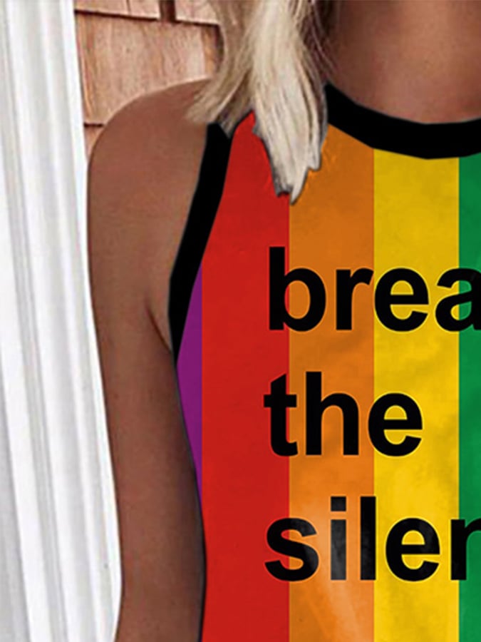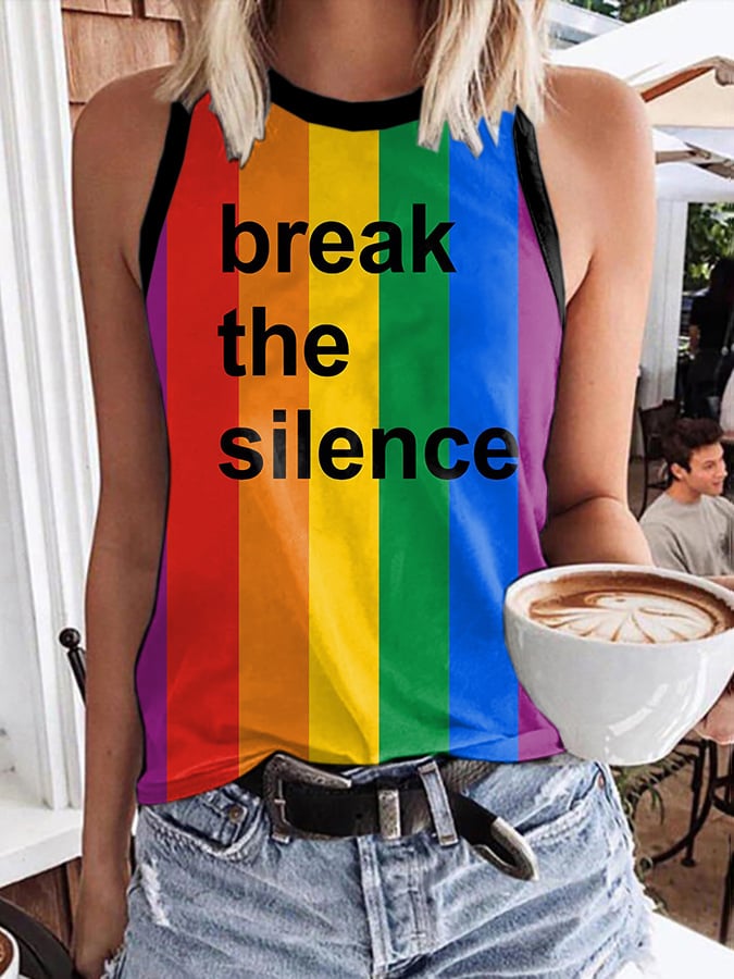 Retro Pride Mental Health Suicide Prevention Break The Silence Print Tank Top