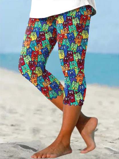Retro Pride Parade Cats Print Leggings