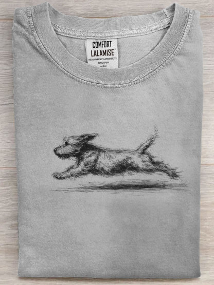 Retro Running Dog Art Print Casual Short Sleeve T-shirt
