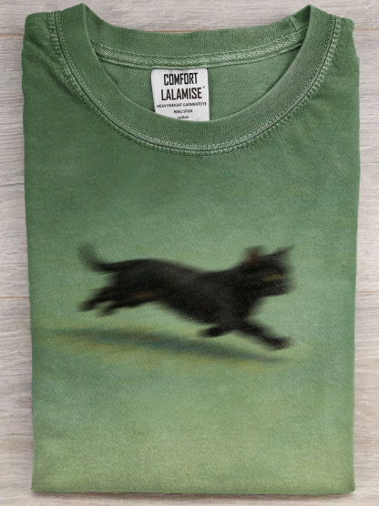 Running Black Cat Art Print Casual Short Sleeve T-shirt
