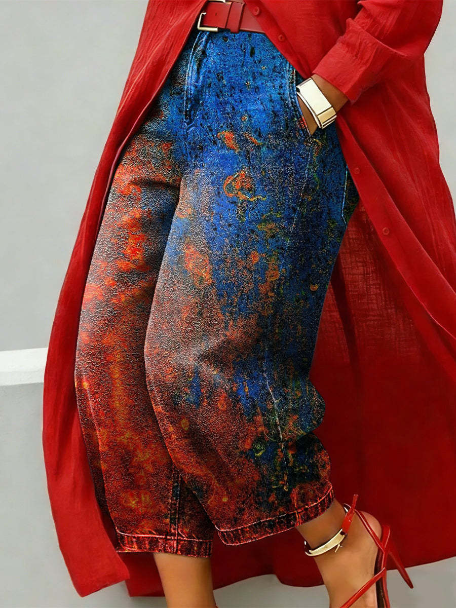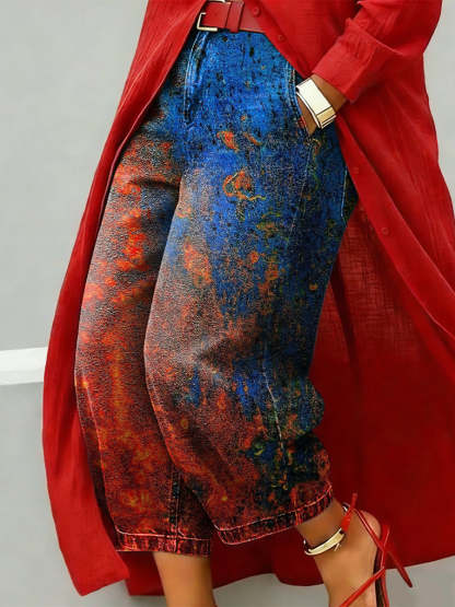 Rust Gradient Decorative Pattern Women's Casual Jeans