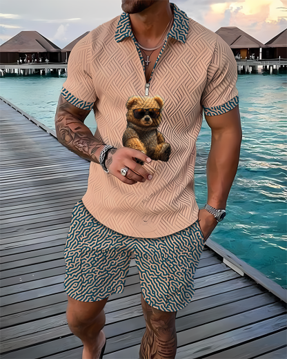 Shades Bear Polo Shirt And Shorts Co-Ord