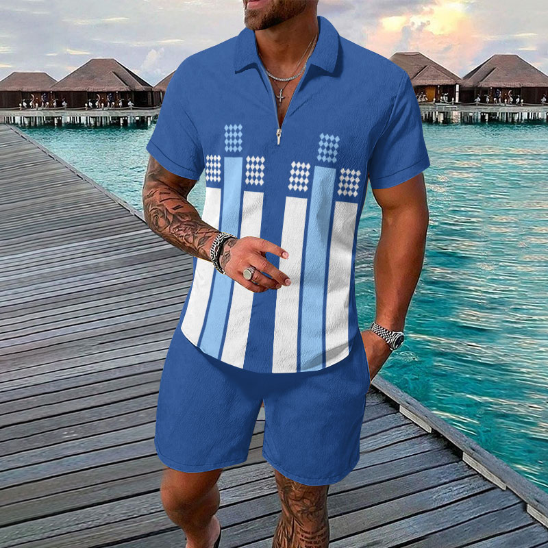 Simple Contrasting Geometric Print Short-sleeved Polo Set
