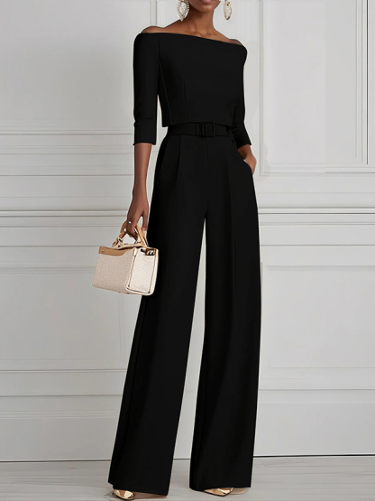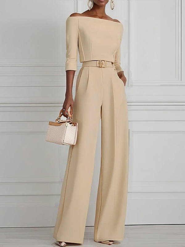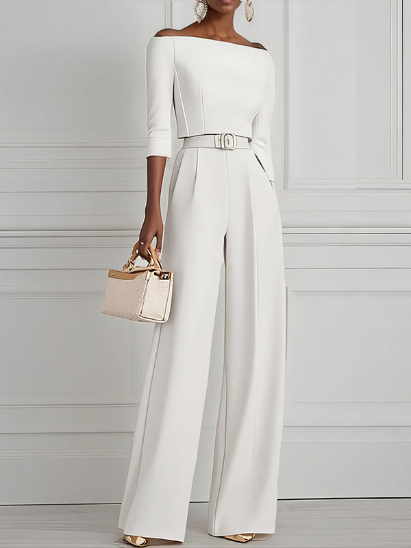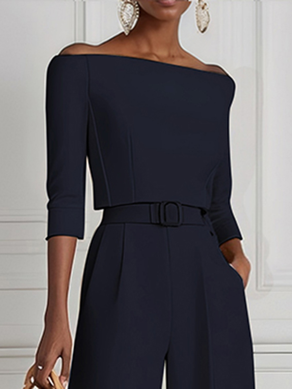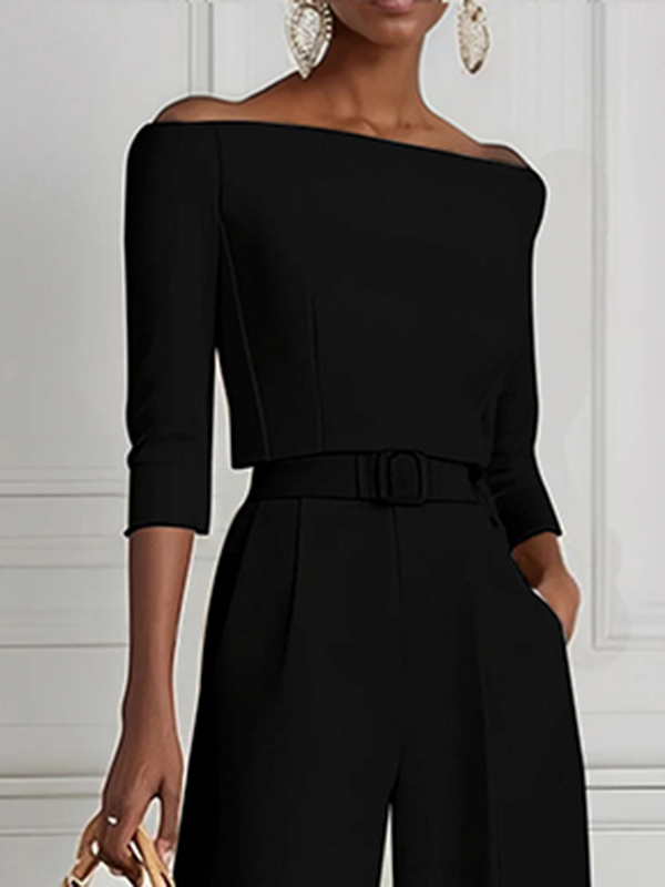 Solid Color Split-Joint Half Sleeves Off-the-shoulder T-Shirts Tops
