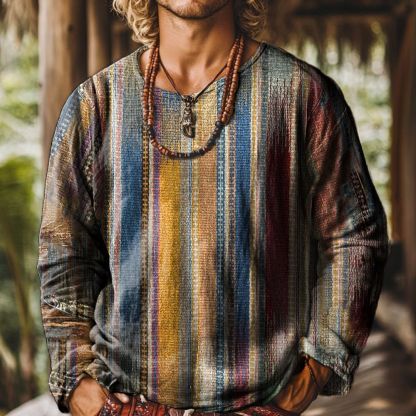 Striped Tie-dye Pattern Art Print 100% Cotton Casual Shirt