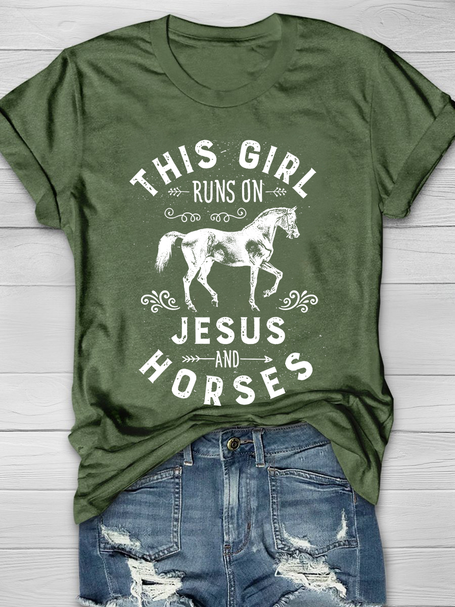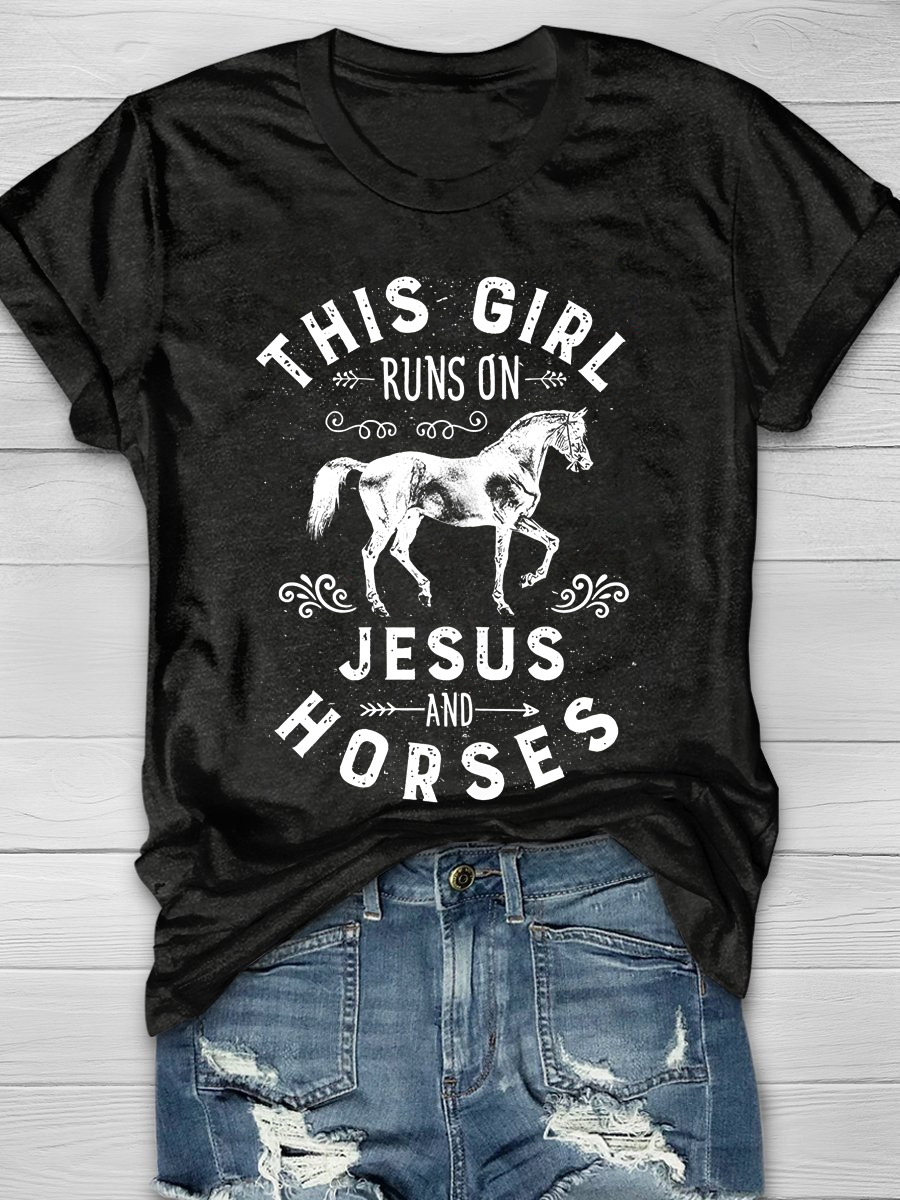 This Girl Runs On Jesus And Horses Short Sleeve T-shirt – lolonb