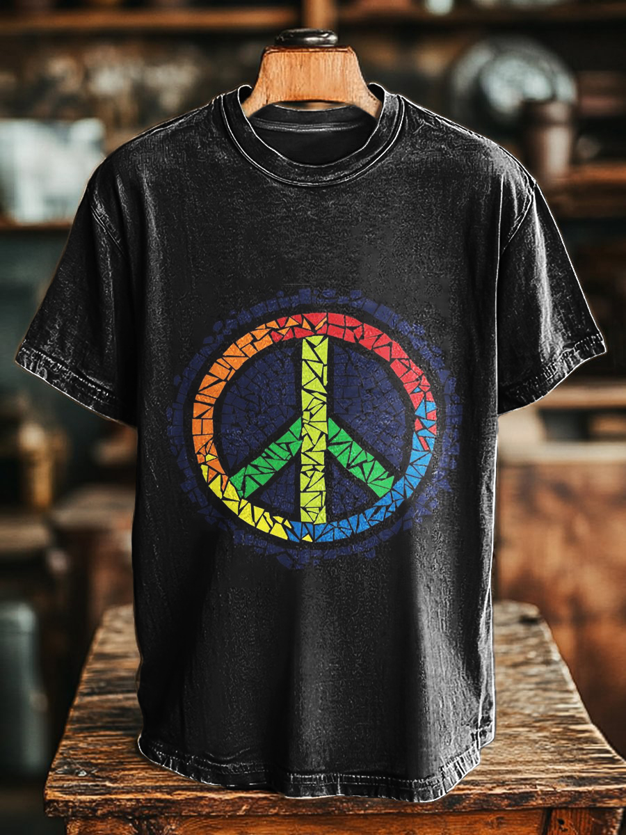 Unisex Art Painting Hippie Colorful Jigsaw Printed Round Neck T-Shirt