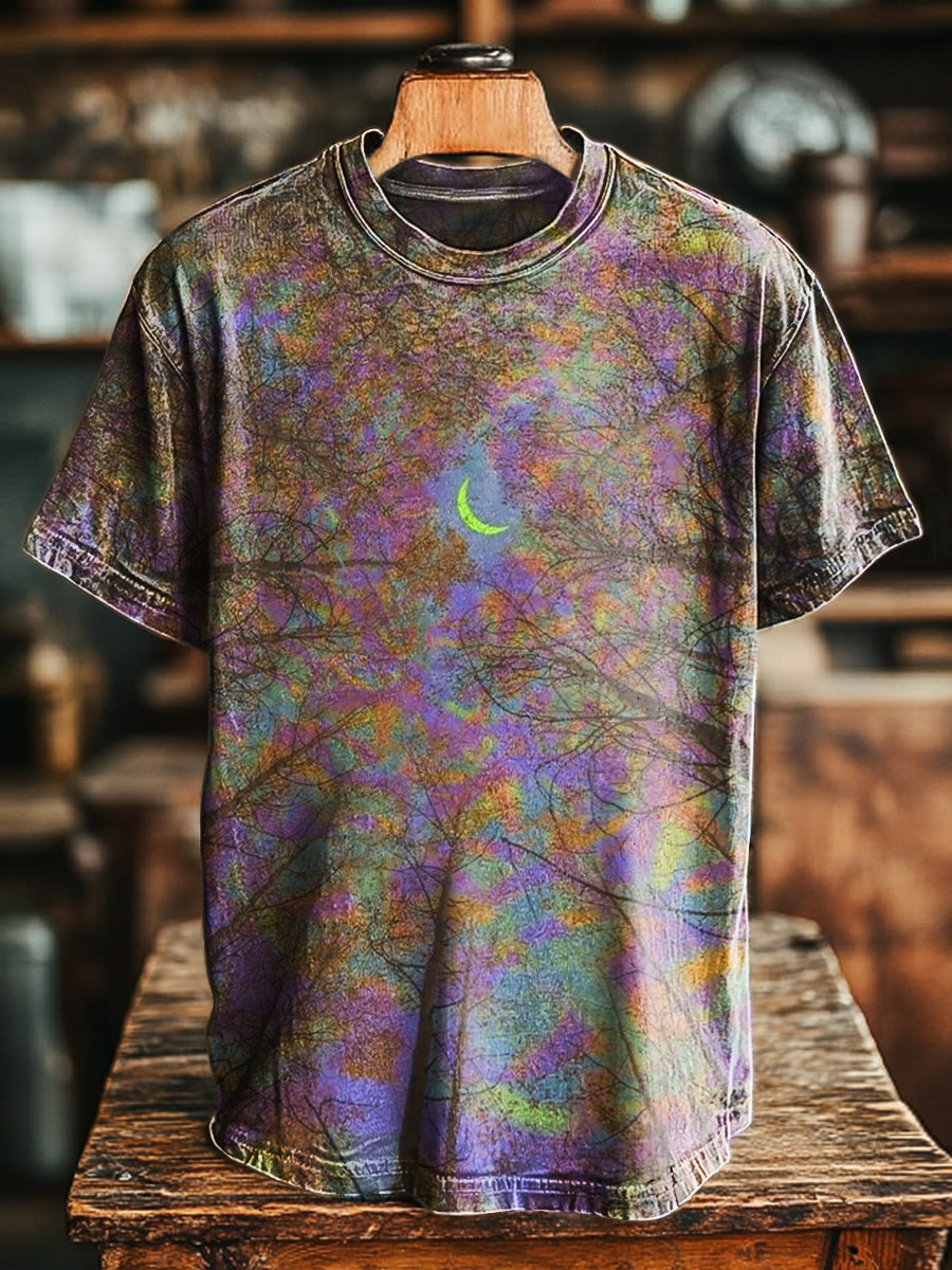 Unisex Art Painting Moon Printed Crew Neck T-Shirt