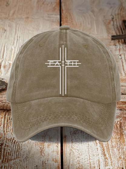 Unisex Distressed Washed Cotton Faith Print Hat