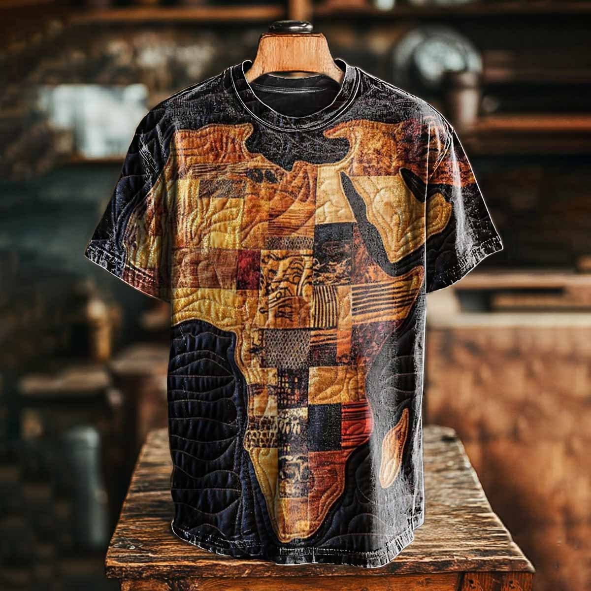 Unisex Ethereal African Patchwork Art Print Casual Loose Short Sleeve T-Shirt