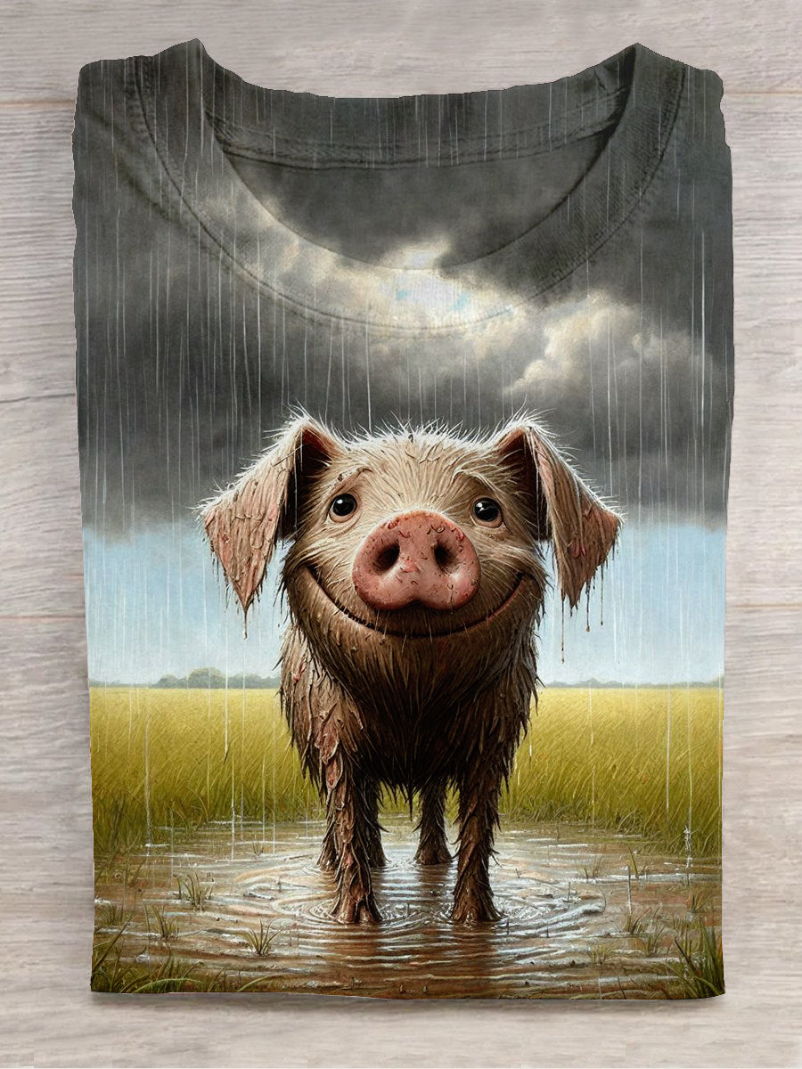 Unisex Fun Piggy Art Print Casual Crew Neck T-Shirt