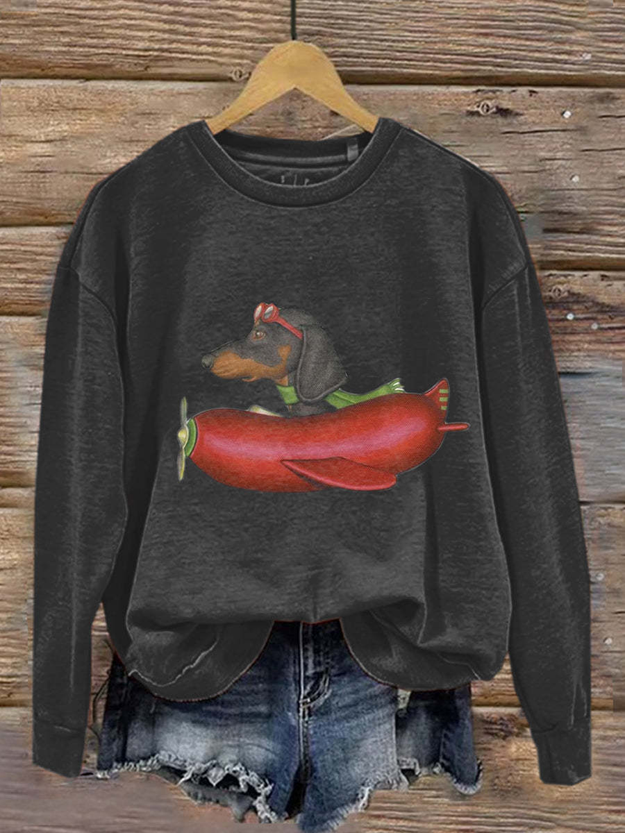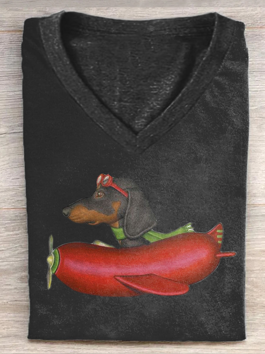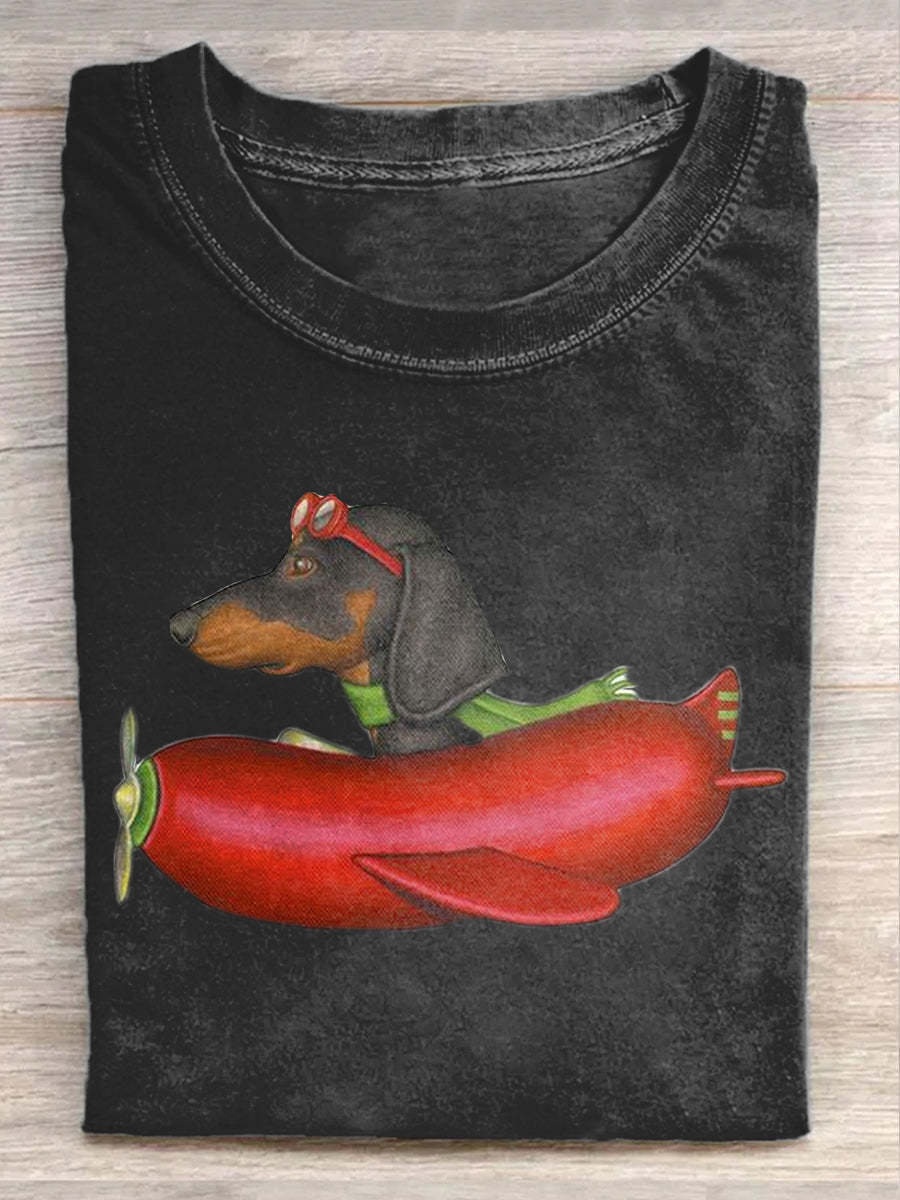 Unisex Funny Sausage Dog Dachshund Illustration Print Graphic Casual Round Neck T-Shirt