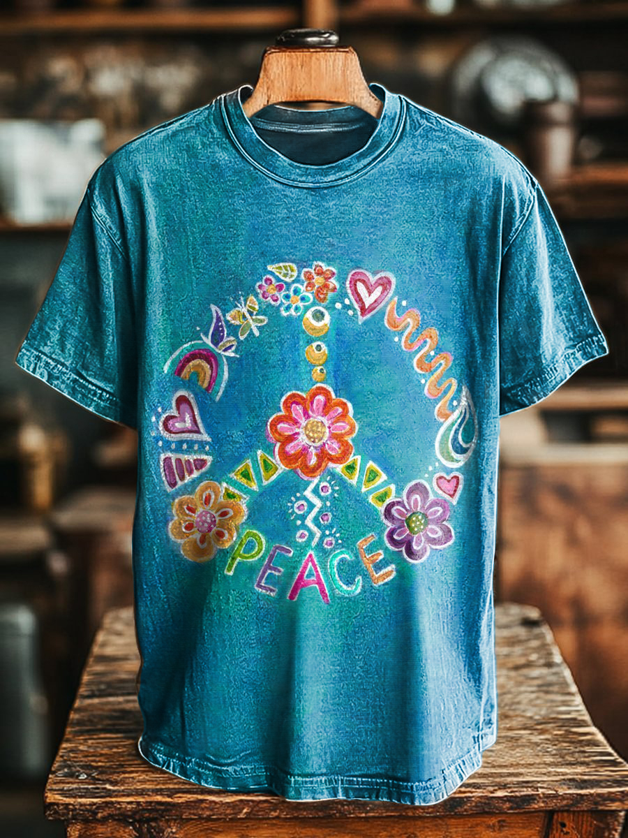 Unisex Hippie Floral Art Print Casual Short Sleeve T-shirt