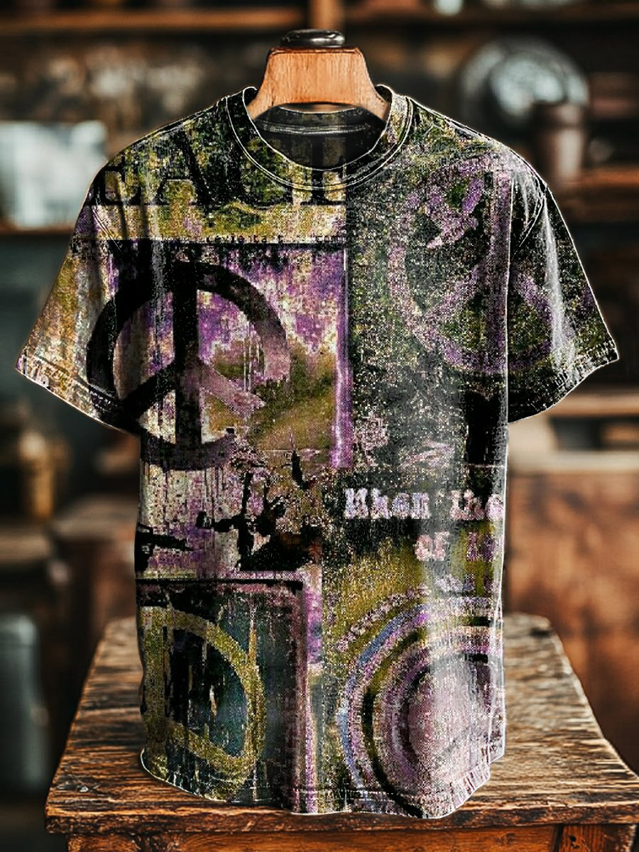 Unisex Hippie Peace Art Print Casaul Short Sleeve T-shirt