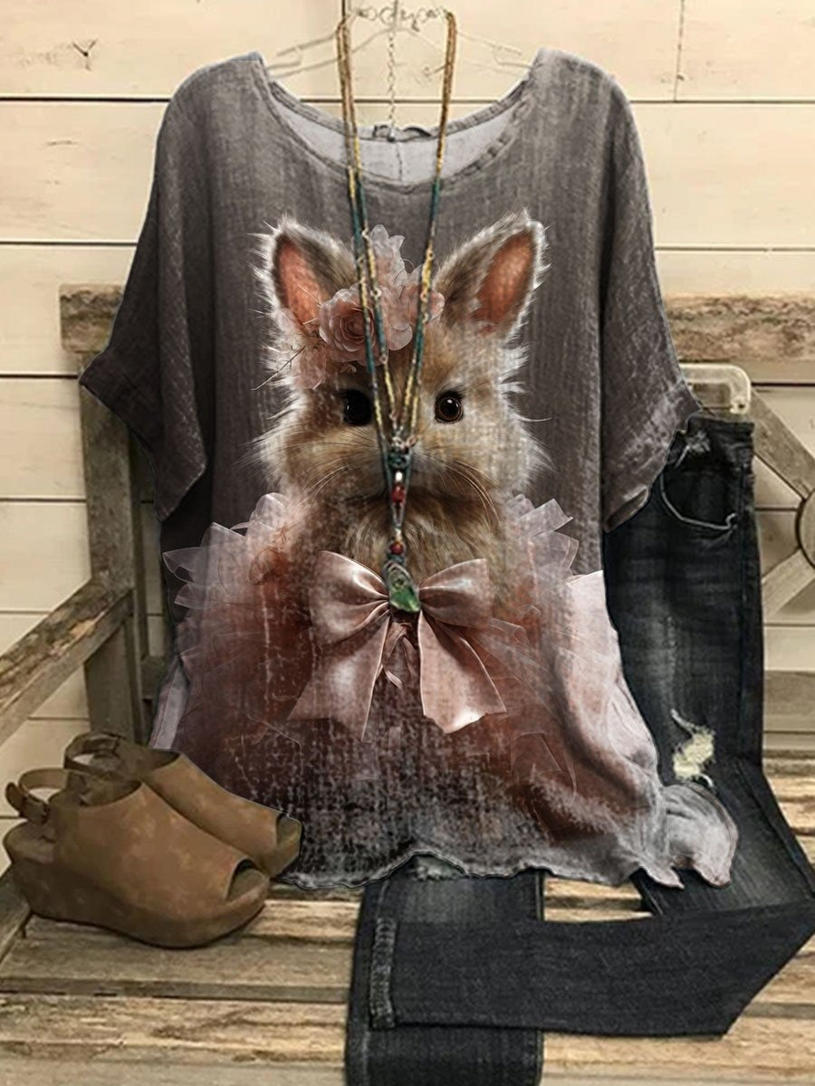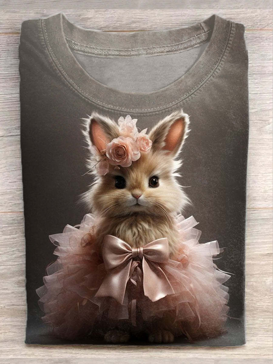 Unisex Rabbit Print Casual Short Sleeve T-Shirt