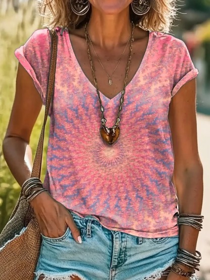 Unisex Retro Colorful Kaleidoscope Print Casual Loose Short Sleeve T-Shirt