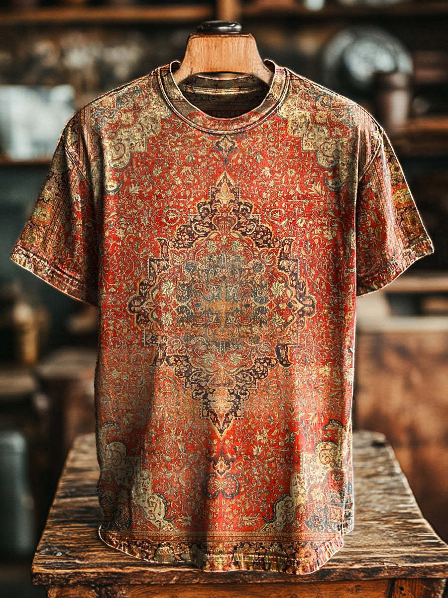 Unisex Retro Ethnic Geometric Printing Casual Loose Short Sleeve T-Shirt