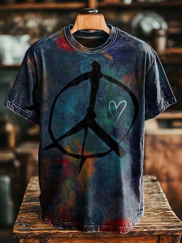 Unisex Vintage Abstract Peace and Love Print Casual Loose T-Shirt